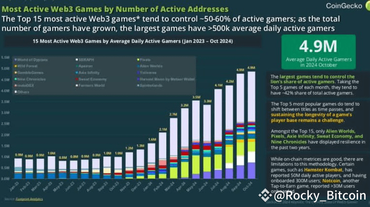 As shown in the diagram below, as of October 2024, the #Gamefi sector's DAU is approximately 4.9 million, a 20-fold increase compared to 2021. Meanwhile, in October 2024, the #Gamefi market capitalization was only $15.7 billion, with a market share of just 0.72%, still far from the peak of the 2021 bull market, which had a market cap of $39.5 billion and a market share of 1.52%. If calculated based on market cap, there's still a 2.5 times potential. If based on a 1.52% market share, there's still a 4.2 times potential. The potential here is self-evident. The game we look forward to the most in 2024 is @WilderWorld, which deserves special attention!