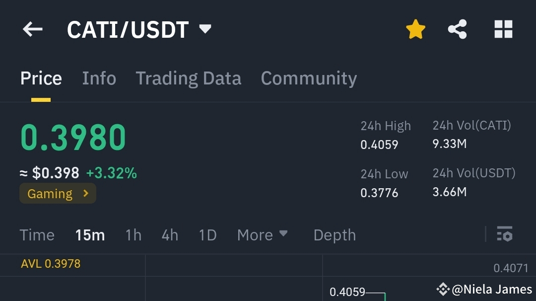 🚀 CATI/USDT Climbs with Steady Momentum! CATI/USDT is trading at $0.3980, gaining +3.32% in the last 24 hours. The pair reached a high of $0.4059 and a low of $0.3776, supported by a strong trading volume of 9.33M CATI. This gaming-focused token shows resilience, bouncing off support levels near $0.3834 and maintaining a bullish trend. A decisive break above $0.4060 could pave the way for a push toward $0.4200. Traders, keep an eye on this one—CATI is gearing up for its next potential breakout! 🌟🎮📈 #CATIUSDT #GamingToken #CryptoMomentum