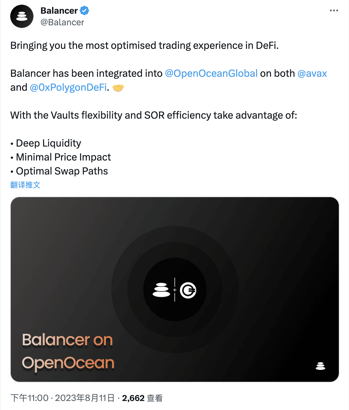 According to official news, Balancer has been integrated into the DEX aggregator OpenOcean.