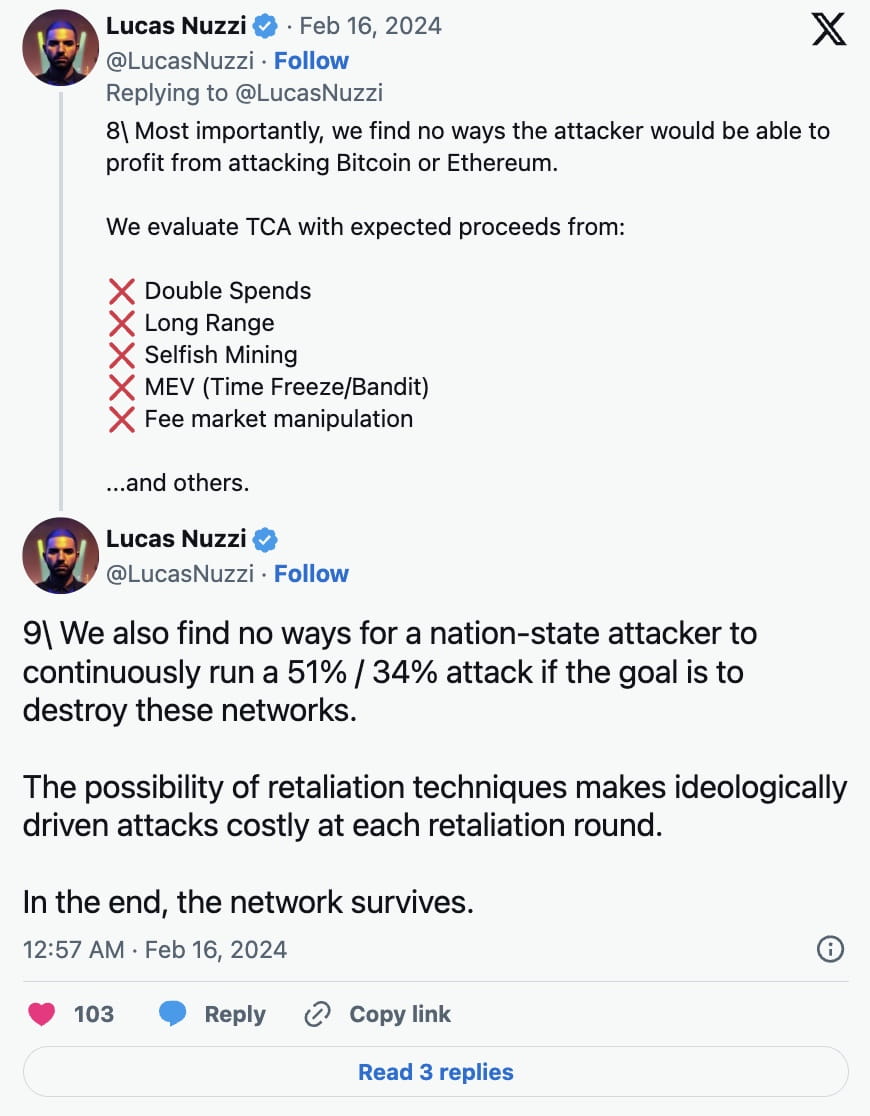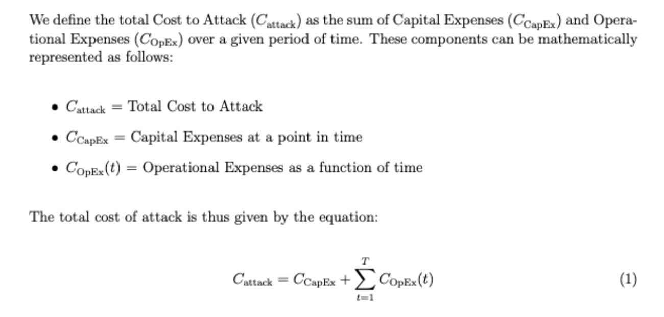Researchers Lucas Nuzzi, Kyle Water, and Matias Andrade used a metric called the "Total Cost to Attack" (TCA) to calculate exactly how much it would cost to mount an attack on a blockchain network.