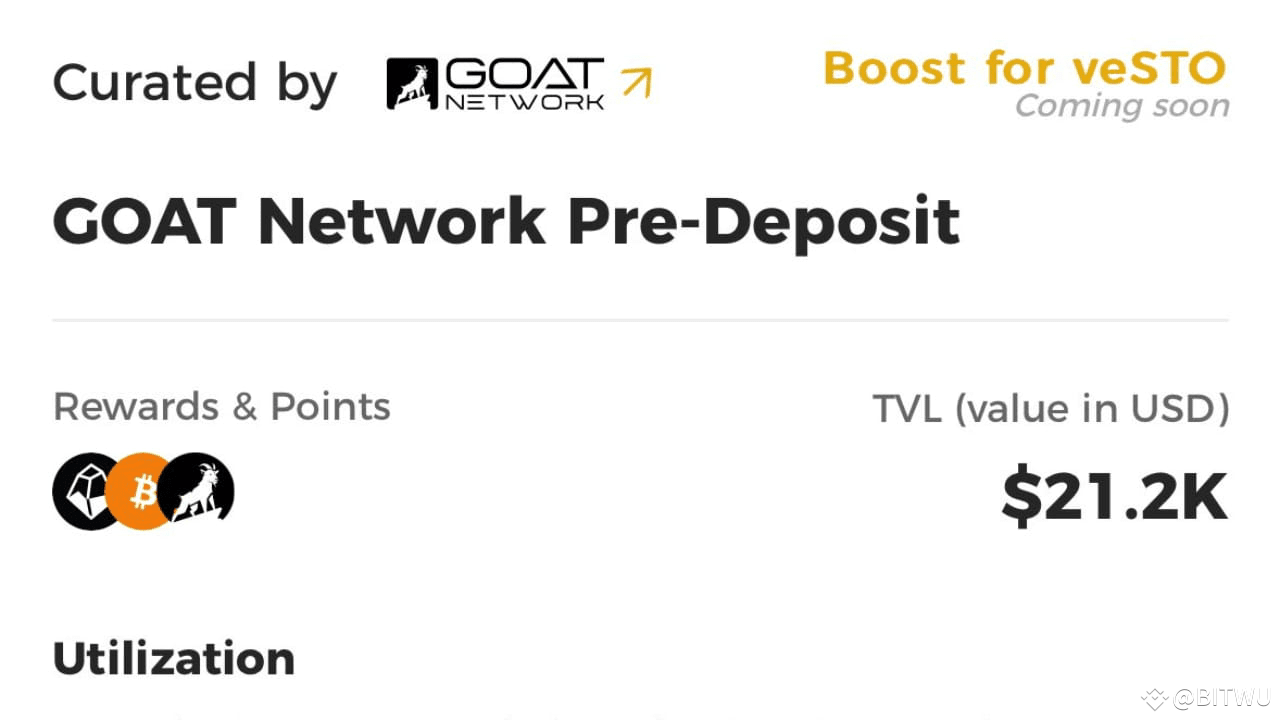 You can deposit BTCB (wrapped Bitcoin) or DOGE on the BNB Chain and earn rewards in various assets (BTC, $STO, GOAT points).