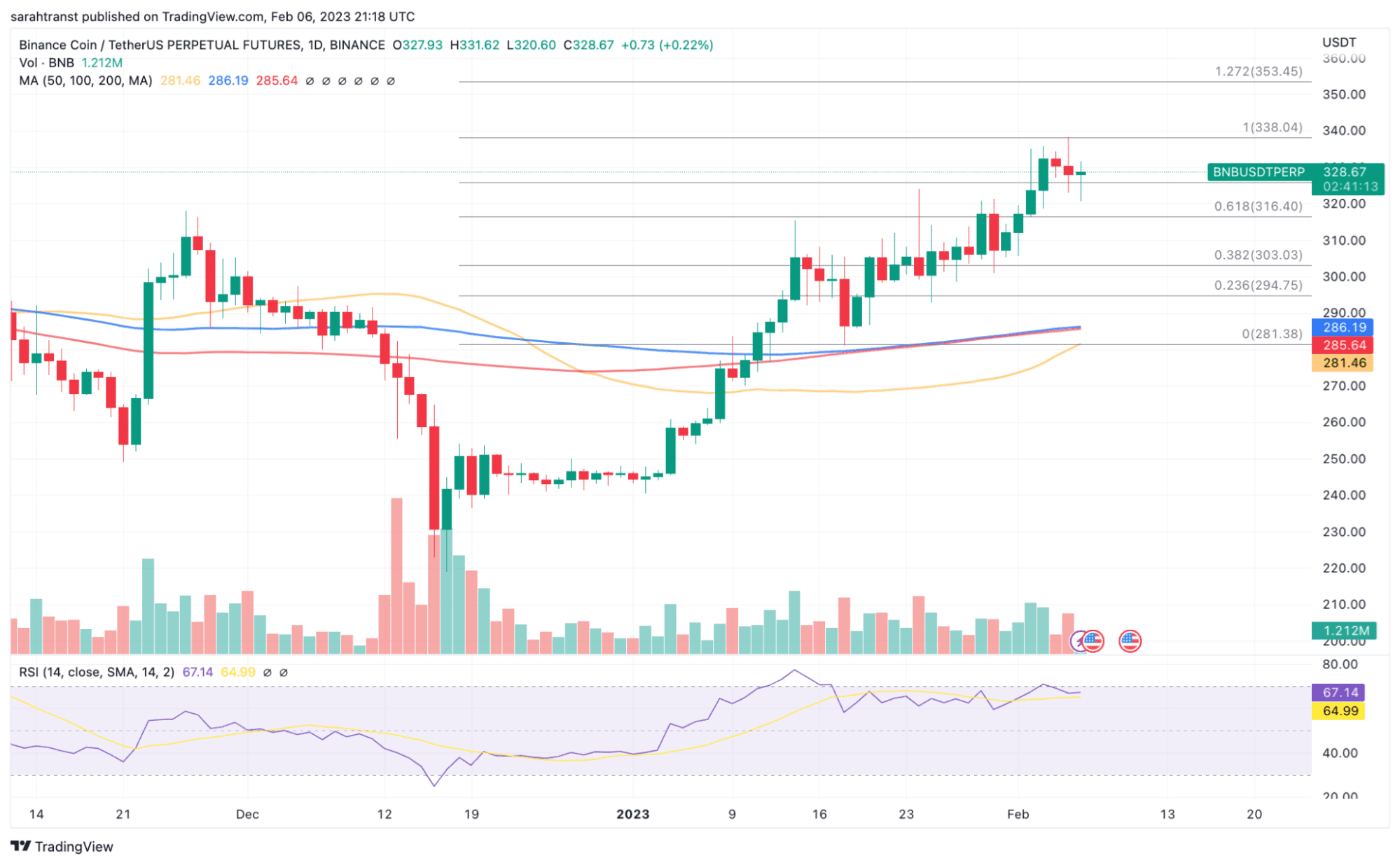 Following a new multi-month high reached on January 24 at $324. Binance Coin recorded a new local high at $338. The decline in trading suggests that bulls may be regaining strength after the recent rally.