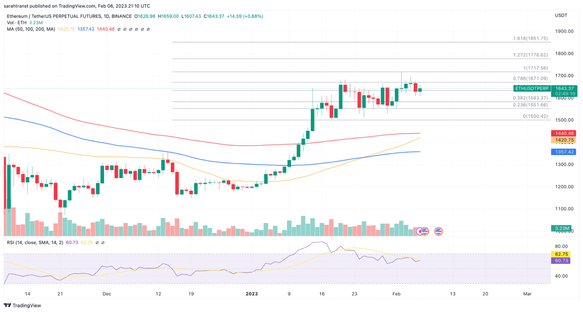 $1,671 - 78.6% Fibonacci Retracement