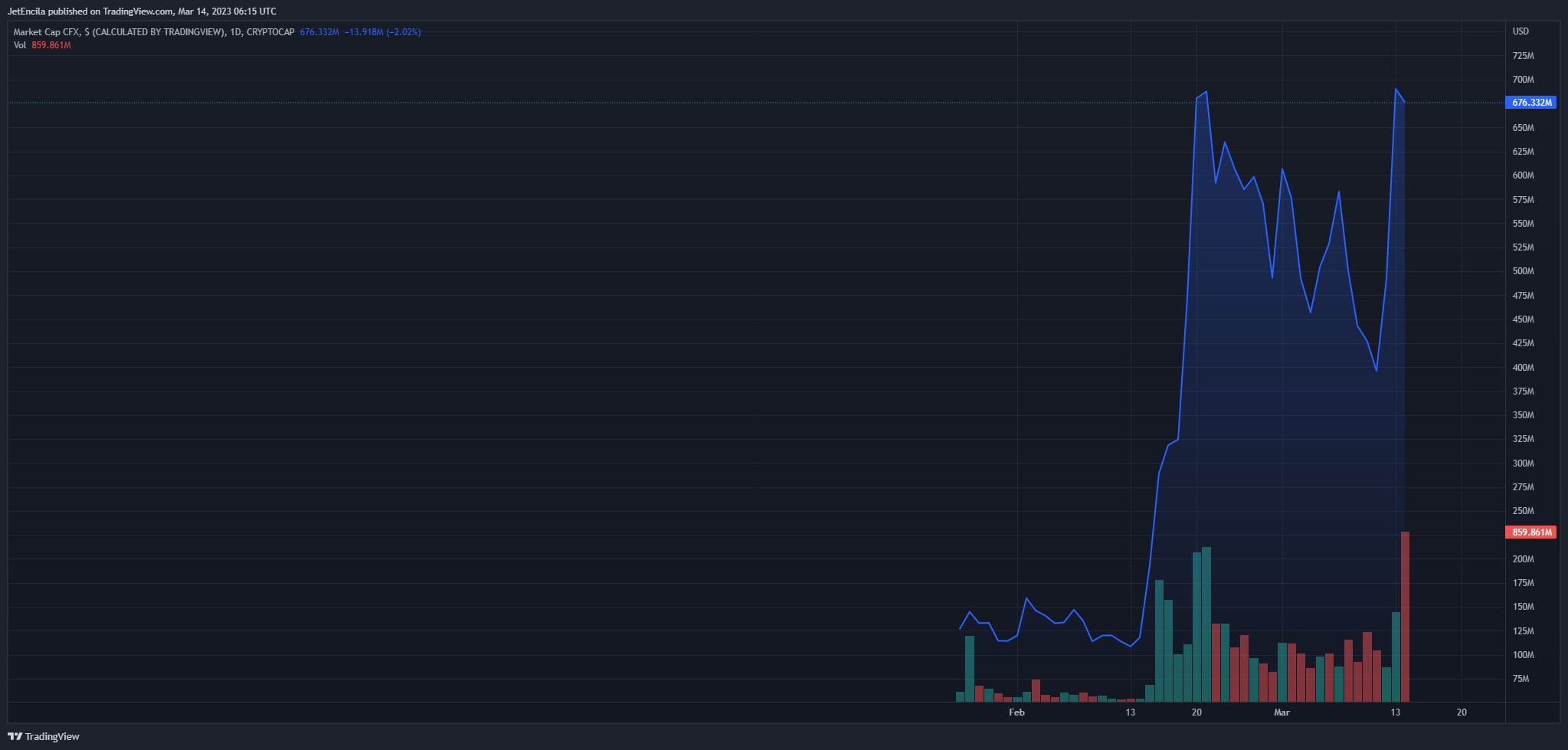 he price of Conflux (CFX) increased for the second consecutive day as cryptocurrencies rebounded amid the ongoing crisis hounding the banking sector.