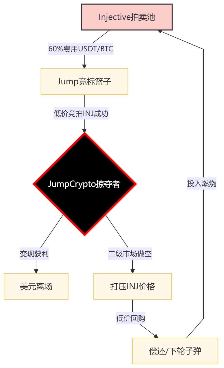 Retail investors on Injective contribute expensive fees day after day, unaware that they are nurturing a parasite that lives by devouring its host. Injective's stakers are digital tenant farmers; the inflation rewards they earn through hard work on-chain are far outweighed by the real gold and silver taken by Jump through auctions. Jump has executed a textbook case of low buying and high selling on Injective: recovering INJ at a discount during auctions and then selling it at a high price on the market to retail investors who are blinded by 'hidden inflation.' This is not just market competition; it is also a systematic liquidation meat grinder that has hollowed out Injective as a protocol.
