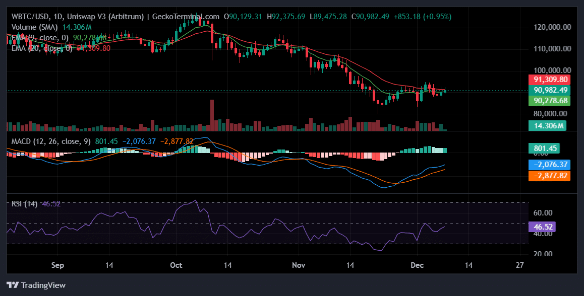 After a sharp drop from recent highs, the price index stabilized just above the psychological $90,000 area. While volatility remains high, the absence of continuity in recent declines suggests that sellers are struggling to maintain control.