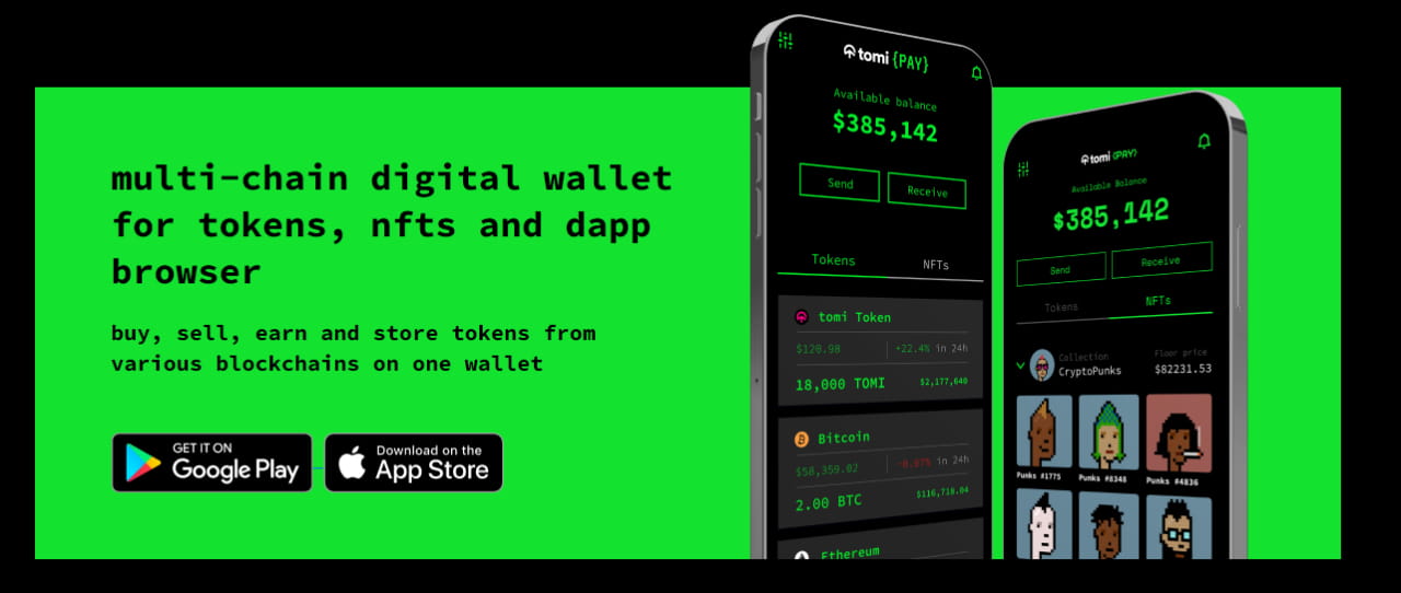 can truly democratize blockchain technology by offering a powerful (yet user-friendly) multi-chain wallet outside of its MP1 servers. As a multi-chain wallet, Tomi’s digital wallet supports some of the most popular and reliable blockchain networks.