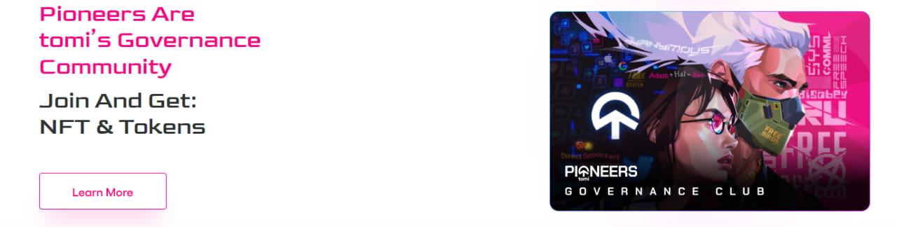 Tomi will launch a top-tier NFT series that is collectively owned by pioneer members.