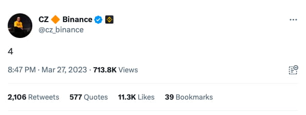 Zhao's response to the news on Twitter with the number "4" suggests he considers the news to be either fake or "FUD" (fear, uncertainty, and doubt). Regardless, this latest lawsuit serves as a reminder that the cryptocurrency industry is still subject to regulations, and companies must comply with relevant laws if they want to operate in the US market.