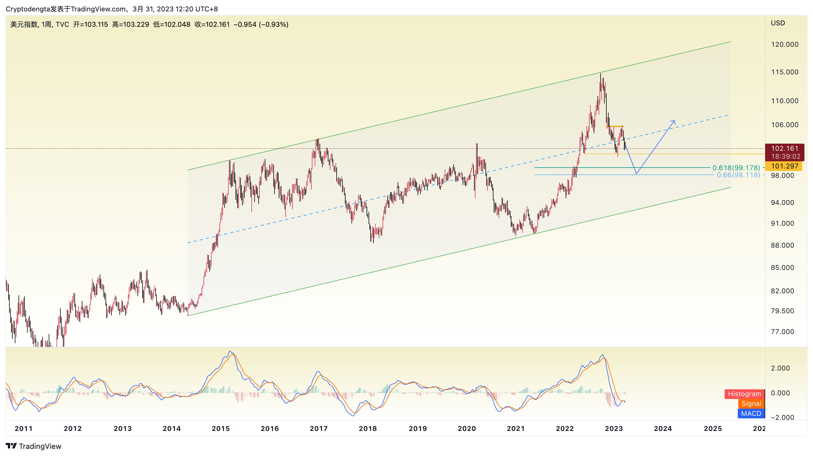 1. The daily adjustment of the US dollar index #DXY has not ended, and there is a chance to reach a short-term low. The 100 mark cannot be established unless it is broken;
