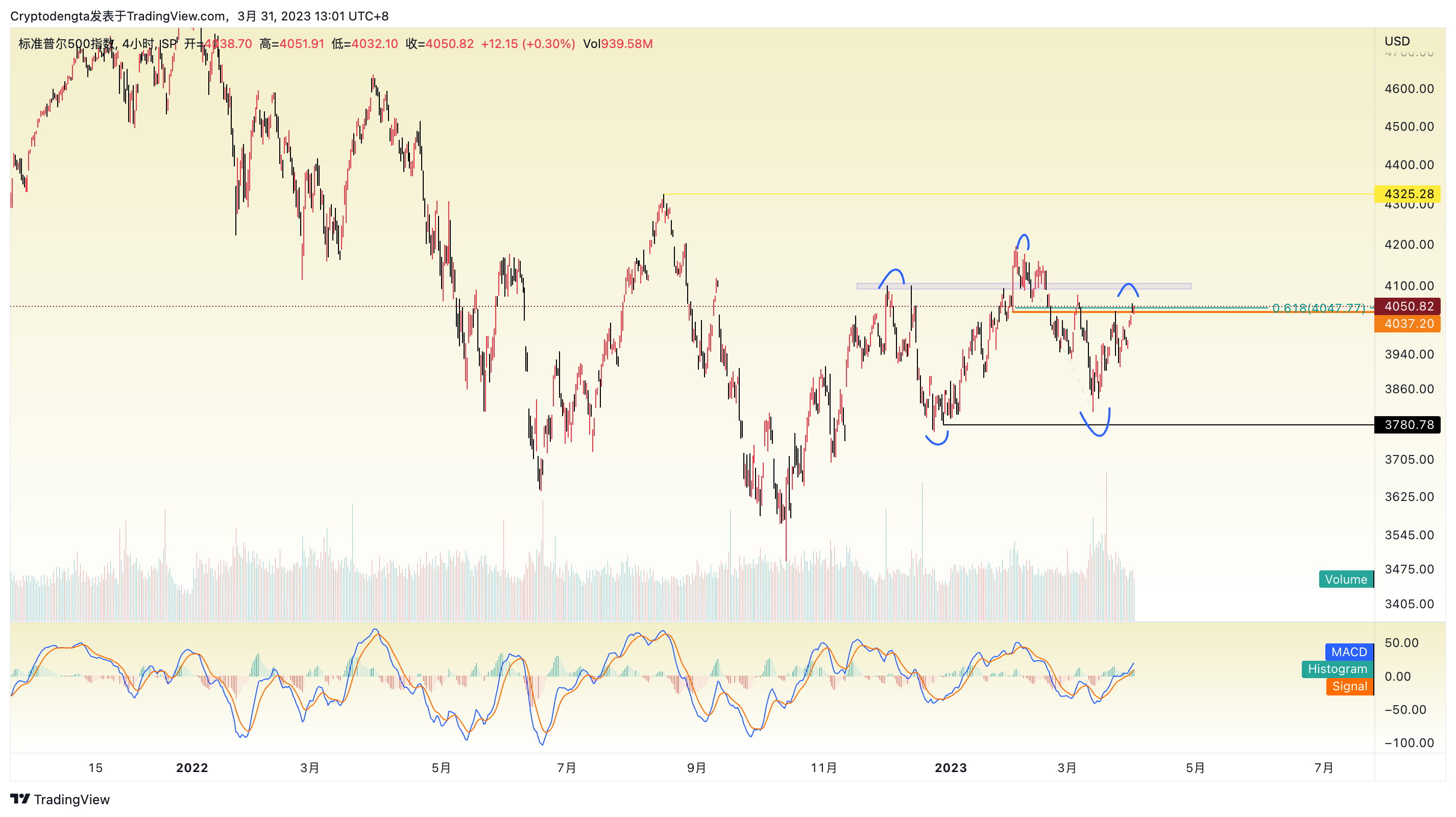 2. US stocks #SPX are still under the pressure of the right shoulder of the head and shoulders top. They opened higher overnight and closed higher today. They will either break through 4100 or continue to pull back to 3900 points. They are neutral and weak.