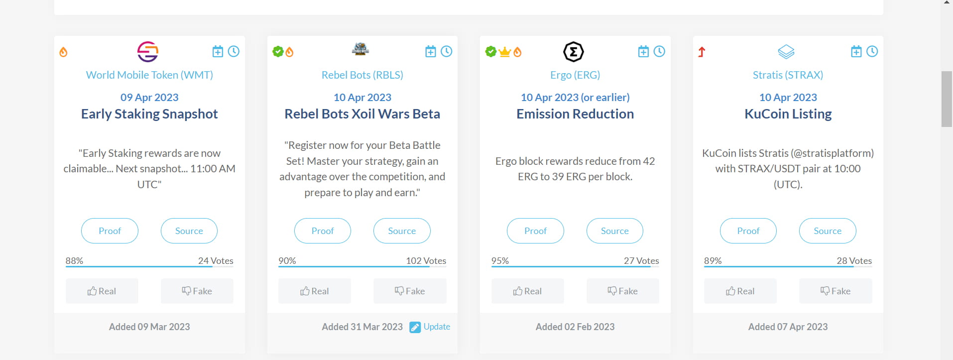 · https://coinmarketcal.com/en/ Shows upcoming events of different crypto projects.