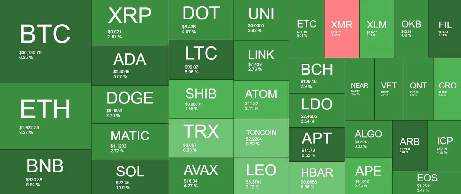 The post Crypto Markets Gain $60B as Bitcoin Explodes Above $30K (Market Watch) appeared first on CryptoPotato.