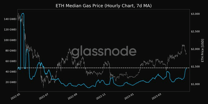 Moreover, Glassnode announced on April 23 that the average gas price for Ethereum had attained a 10-month high. During periods of increased demand for cryptocurrencies, ETH gas prices have risen on multiple occasions in the past. Consequently, the cost for the average user rises to prevent network congestion.