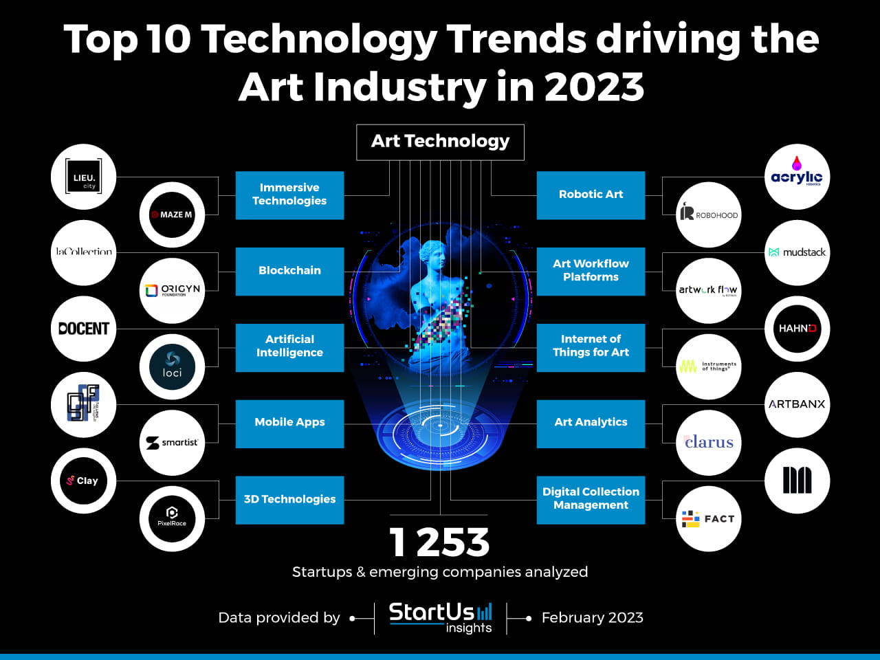 Are you wondering what art tech trends and startups will soon impact your business? Explore our in-depth industry research on 1,253 art tech startups and scale-ups and get data-driven insights into technology-based solutions in our art tech innovation map!