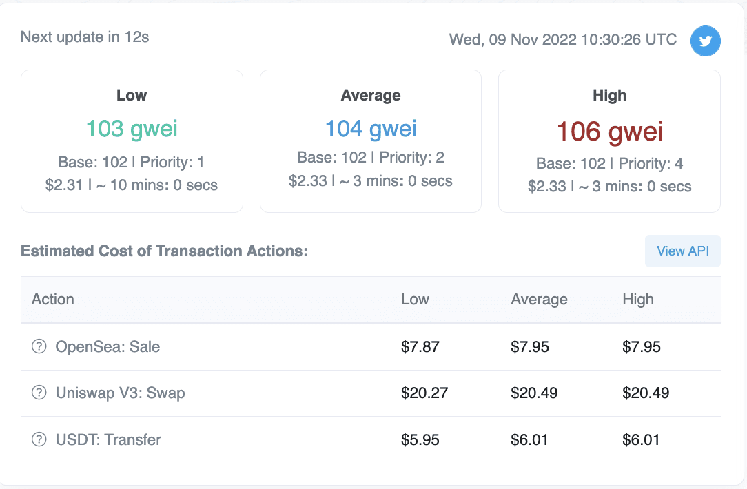 Etherscan data shows that gas fees have risen, reaching an average of 104 gwei.
