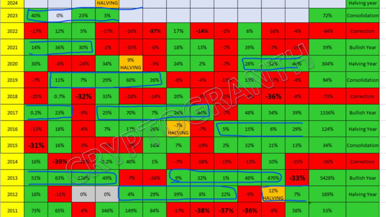 This is just interpretation base on monthly data. there are many other trigger which impact btc price.