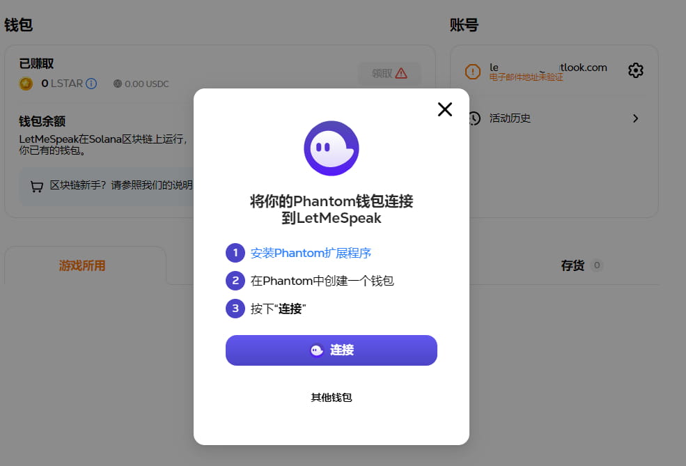 Letmespeak is built on the Solana chain. You need to create a Phantom wallet and log in using your email.