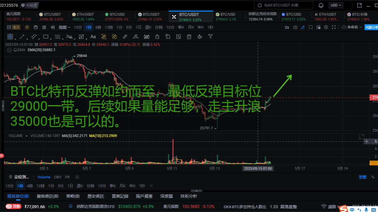 BTC Bitcoin rebounded as expected and reached the lowest rebound target around 29000. If the volume is sufficient in the future, the main upward wave of 35000 is also possible.