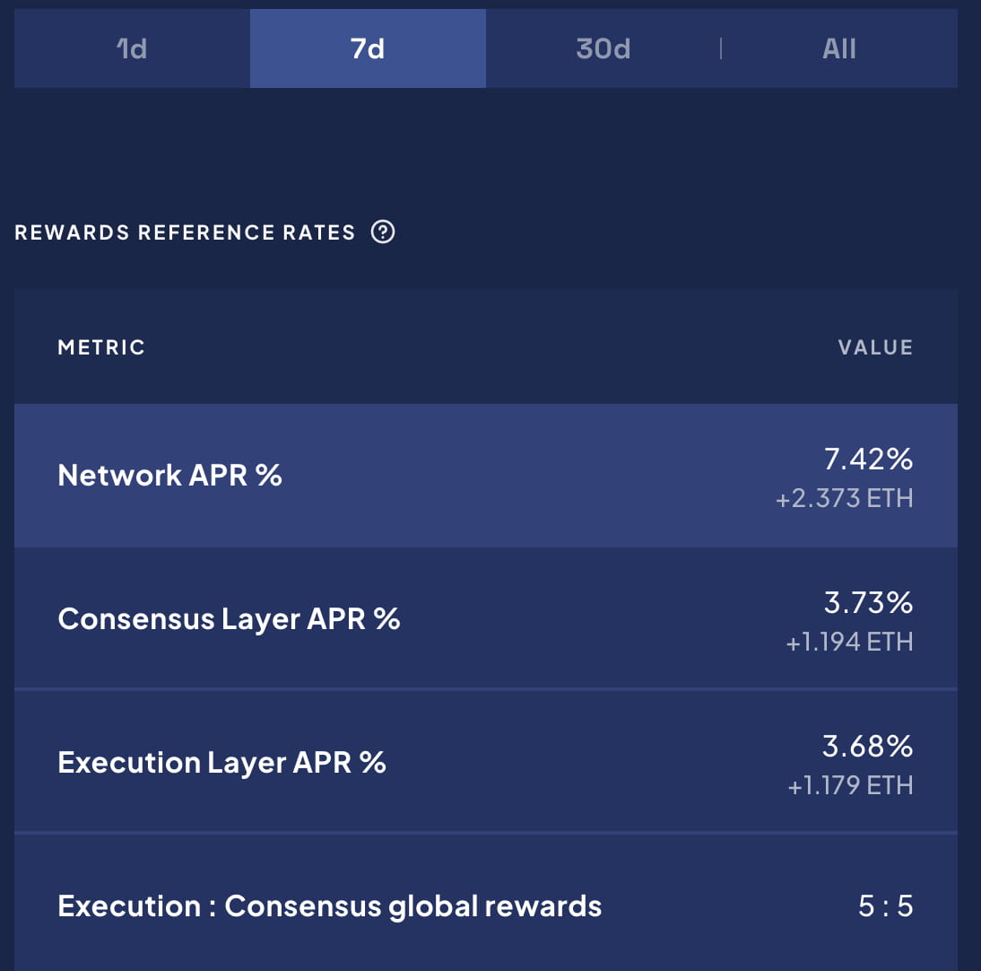 It should be noted that with the recent surge in gas fees, the rewards for the execution layer are also expanding dramatically. The ratio of the execution layer rewards to the consensus layer has reached 1:1, and sometimes even exceeds the consensus layer rewards, which is a completely reversed situation from the past.