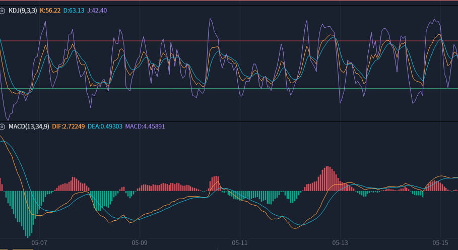 KDJ is a swing indicator, which mainly changes between 0-100 values, reflecting whether the market is overbought or oversold. The indicator changes quickly and is more suitable for short-term operations. At the same time, there are more false signals.