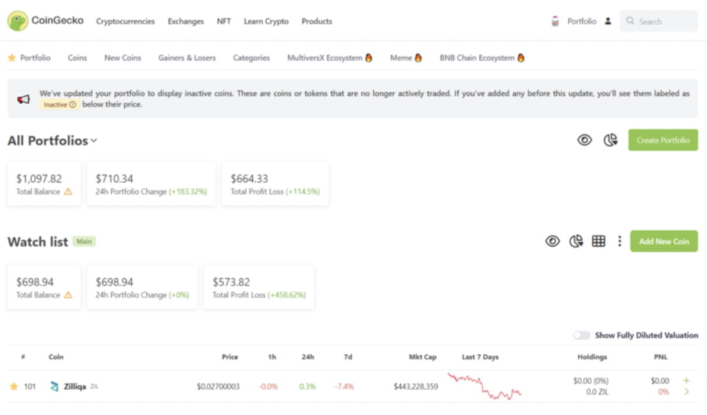 Investors can use portfolio tracking features on platforms like CoinGecko, Debank, and Nansen to bring their crypto assets into one place and make it easy to follow those assets and related developments. Portfolio Tracker can also notify investors of major price changes via push notifications or emails.