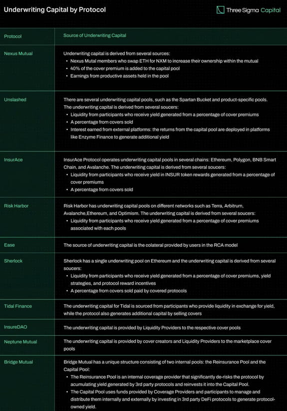 With more underwriting capital, protocols may offer more coverage, making them more attractive to users. However, the source of underwriting capital may affect the long-term sustainability and effectiveness of the protocol. For example, many protocols are spreading their funding pools across multiple chains, which disperses liquidity and may affect their potential to improve capital efficiency at scale.