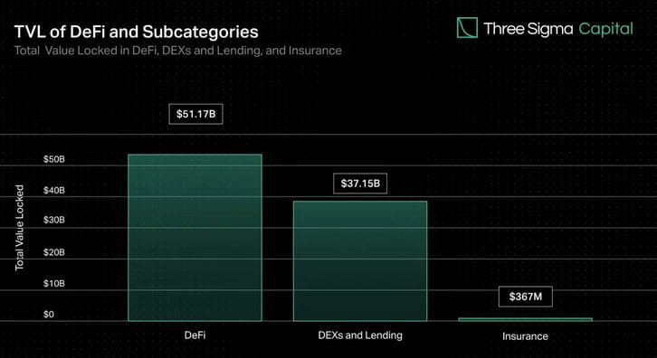 While DEX and lending account for the majority of DeFi locked value, insurance accounts for less than 1% of the total value. However, as TVL grows, the potential for smart contract vulnerabilities or other attack vectors will increase accordingly. Insurance solutions are similar to safety nets in traditional financial markets, and thriving solutions will encourage investors, individual users, and institutions to participate in on-chain markets with confidence.