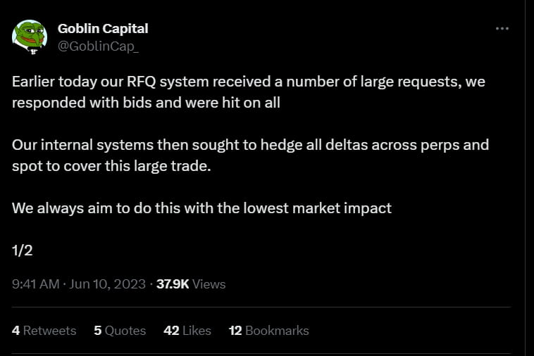 Goblin Capital, a market maker and venture fund, also tweeted that they lost some money as well, as they got hit on their bids.