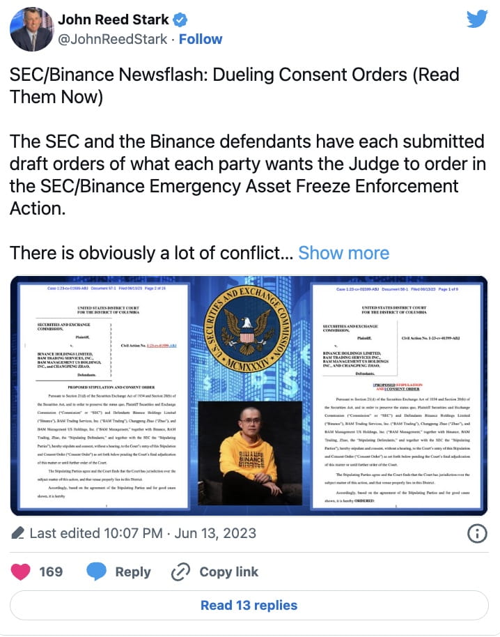 In the wake of the SEC’s lawsuit against Binance and Zhao, the commission filed an emergency request with the court to have BAM Trading’s assets frozen.