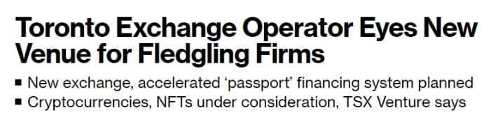 Then, good news followed, and Bloomberg reported that TMX Group, the parent company of the Toronto Stock Exchange, is planning to launch a new trading platform for start-ups and alternative asset classes. The company said in a white paper released this week that the new exchange will target growth companies.