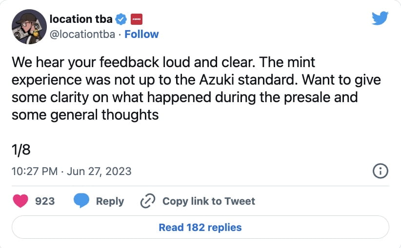 “Collecting Azukis always felt special, doesn’t feel like that today for me. I’m more sad than angry or disappointed,” tweeted PlantedSlightly. “99% of the mistakes were too obvious to miss.”