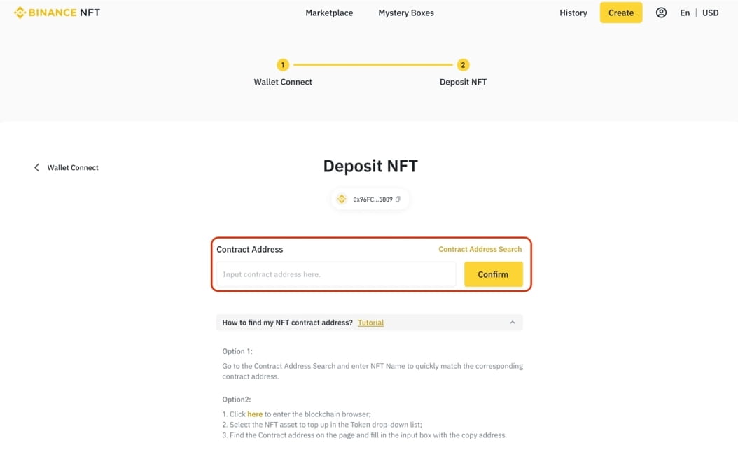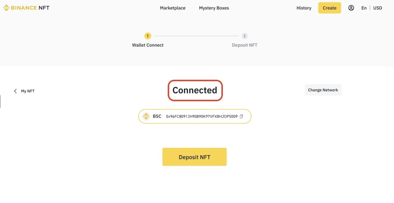 Binance makes NFT deposits as easy as possible. You have the opportunity to deposit your NFTs in just 2 steps.