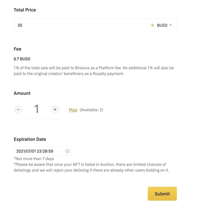 On Binance NFT Marketplace, the commission fee to be paid when performing NFT transactions is determined as '1 percent'. Thanks to these very low commission fees, you can carry out transactions with peace of mind.