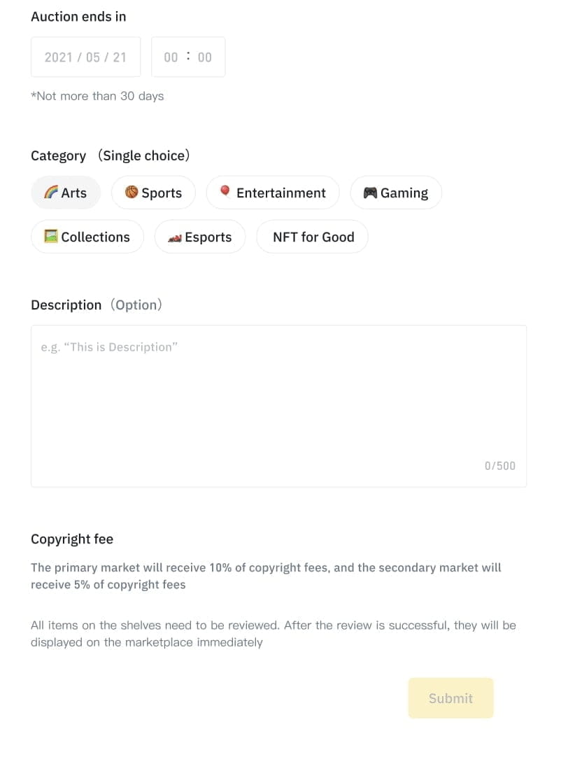 Then go to the 'Description' screen of your NFT. You can show the description, bid history, and provenance of your NFT.