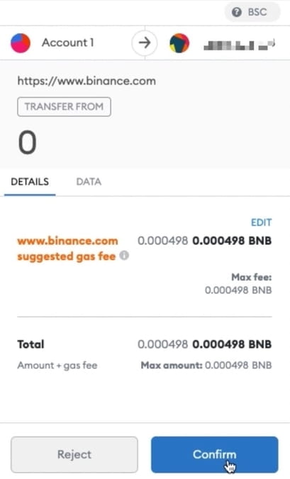Afterwards, MetaMask will appear in the pop-up window. You must select and confirm the network you want to connect to Binance NFT.