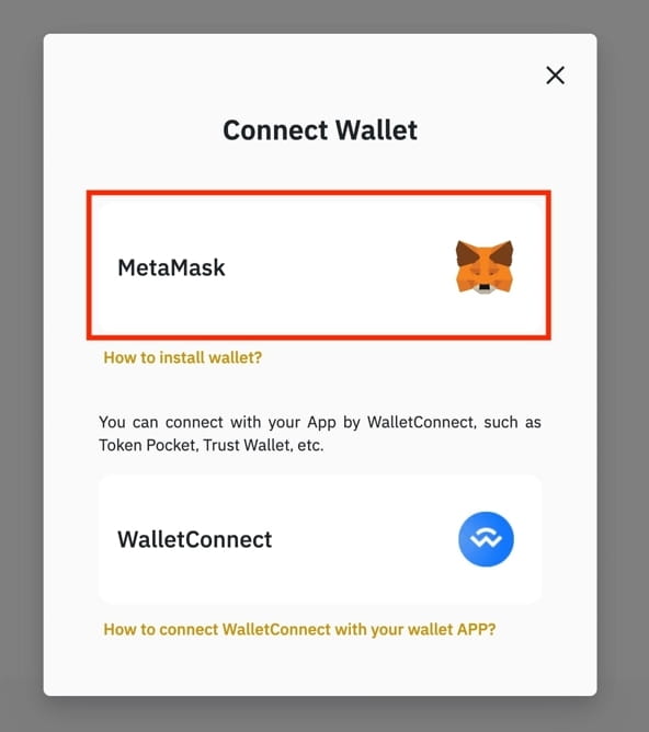 You can then choose the wallet you want to connect. Currently only MetaMask and WalletConnect are supported.