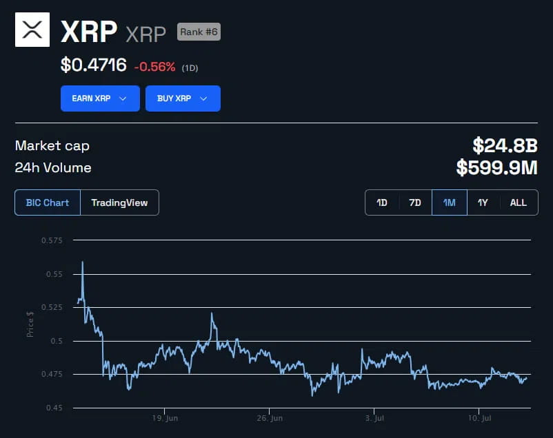 Ripple’s native token has retreated slightly on the day, dipping to $0.471 at the time of writing.