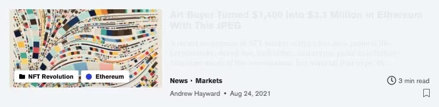 American digital artist Mike “Beeple” Winklemann first got involved with NFTs last October after hearing how much his fellow artists were earning from them. “I was like, my gosh, this is pretty big change,” he told Decrypt last year.