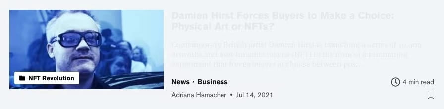 It’s a typically bold move by the artist, forcing owners to confront questions of value and scarcity in this nascent digital art ecosystem. Is it better to hang onto Hirst’s physical work or the NFT version — especially since digital images can be freely copied and shared? If most people choose to destroy the NFT in favor of the physical work, will that cause the newly scarce NFT to appreciate in value?