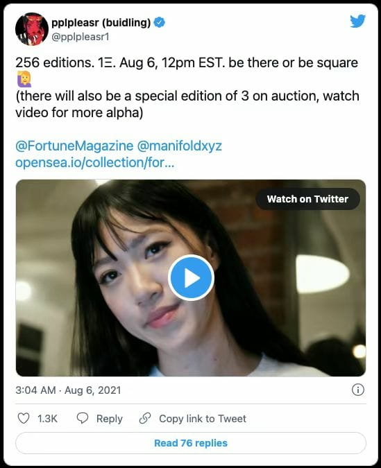 “My goal of selling NFTs for a living has shifted to seeing how I can innovate and forge new paths with NFTs,” ppplpleasr told Fortune at the time of the sale.