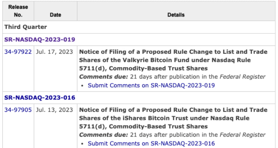 Valkyrie’s listing is the second spot Bitcoin ETF proposal considered by the SEC, coming just days after the SEC released BlackRock’s proposal on July 13.