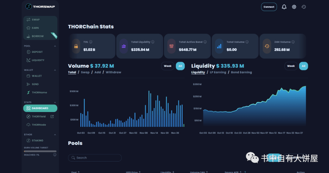 The second operational core of THORChain is the liquidity pool. There are usually two assets in a liquidity pool - THORChain original ecological token (RUNE) and non-RUNE assets. Liquidity pools are initiated and operated by validators. Whenever a validator wants to launch a new pool, it must pledge RUNE that is approximately twice the value of non-RUNE assets in the liquidity pool to the ecological Vault. This will ensure that the validator will not steal the property in the pool privately. If the validator is found to have stolen, the mortgage RUNE of 1.5x the amount stolen will be deducted.