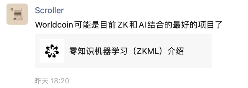 Secondly, WorldCoin has also invested a lot in the ZKML field, which I will not elaborate on. Scroll has also recognized it.