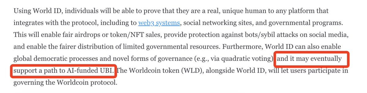 2. If there is no payment, it will rely on public welfare funding, otherwise it will eventually be a virtual currency. Worldcoin's UBI must still be built on these two. The white paper also roughly describes how they will make money through wallets after establishing a global unified identity and financial system, which is the first point. The second point is very interesting. The white paper says that "it will eventually move towards the path of AI-funded UBI", which leaves a lot of room for imagination...