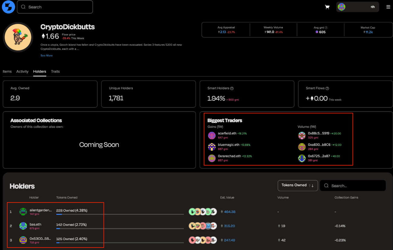 Identify and track smart collectors: gmi is a novel NFT wallet grading index that users can use to track the smartest collectors in the space to help make investment decisions.