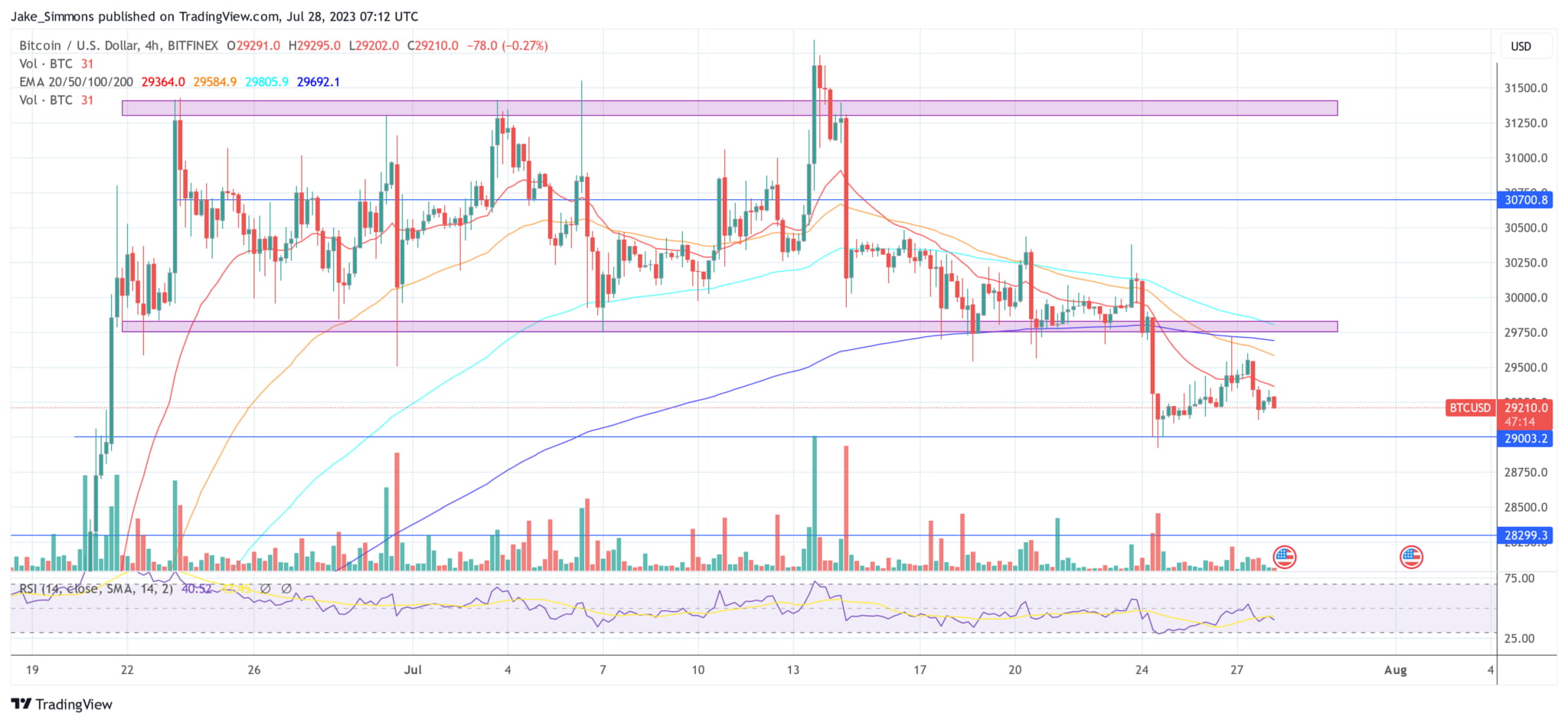At press time, Bitcoin was trading at $29,210.