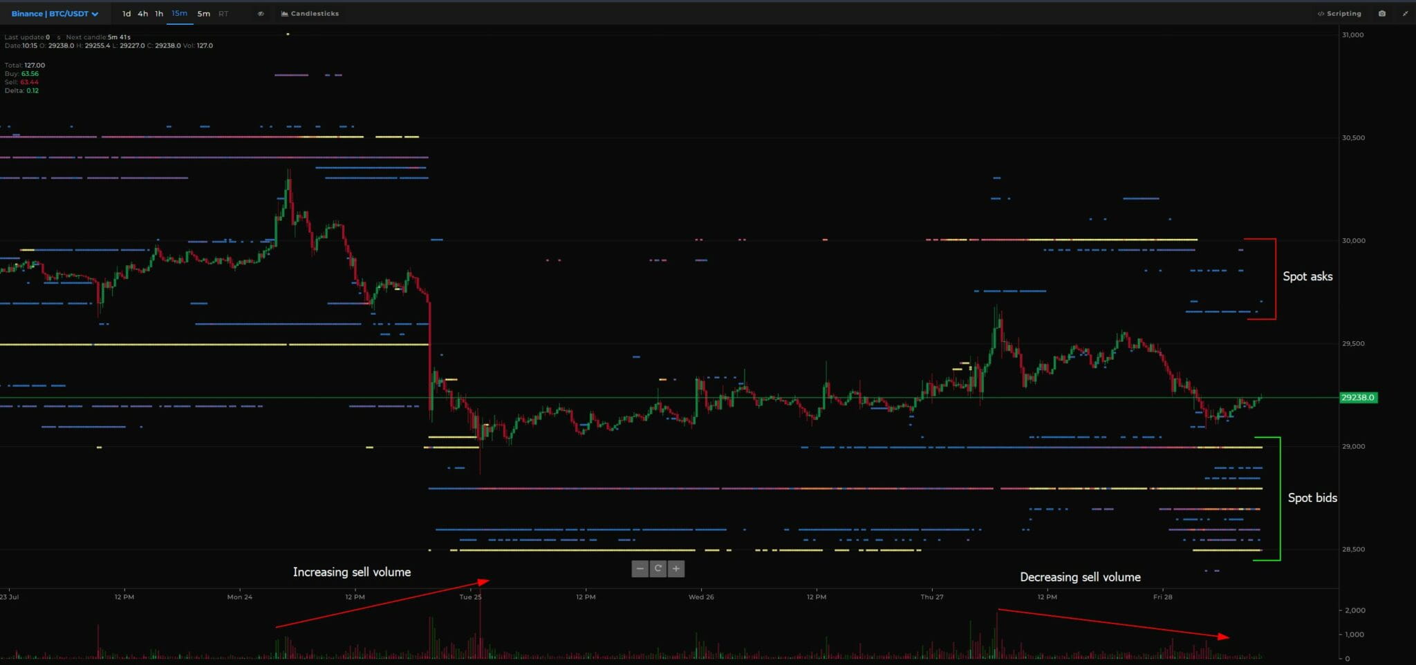 With bid liquidity between $29,000 and $28,500, this area could become a point for buyers to step in if BTC experiences a correction. In a bullish scenario, spot buying will occur in this area, followed by shorts rotating out. New longs are opened with spot supply approaching $30,000. In a sell-off situation, prices are affected by spot bid liquidity and forced selling occurs, Skew said.