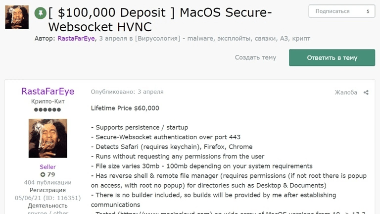 A new program has appeared on the Darknet that attacks macOS, stealing crypto and personal data. It is called macOS-HVNC. The main goal of the program is to steal confidential information: