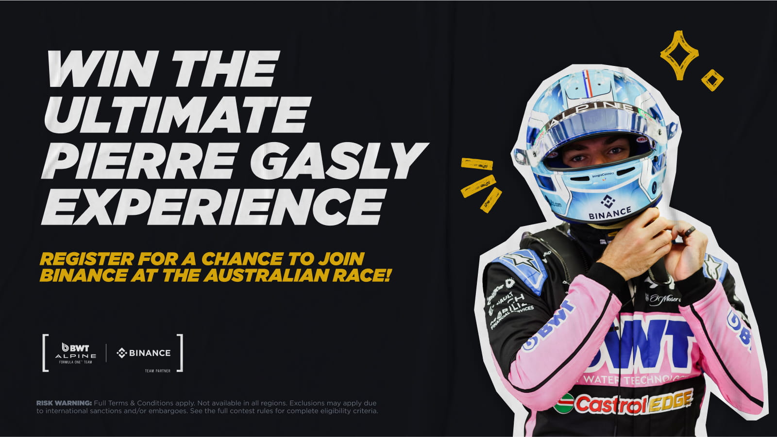 Following the excitement generated by the Pierre Gasly Helmet Design Contest, Binance is thrilled to announce a new promotion in our ongoing partnership with Pierre: The Pierre Gasly Experience Giveaway.